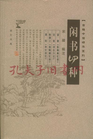 《闲书四种》所收选入的《影梅庵忆语》、《浮生六记》、《香畹楼忆语》和《秋灯琐忆》是明清四位文人回忆家庭生活的名篇,在本世纪三十年代曾风靡一时。林语堂先生在《生活的艺术》中将这些文章中描述的内容称为生活的典范。