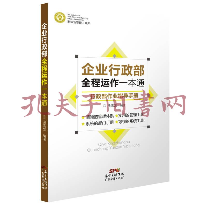 本套丛书共十二本,主要以部门架构为脉络组成,涵盖企业的多个部门:销售部、市场部、研发部、生产部、品质部、采购部、物控部、仓储部、售后服务部、人力资源部、行政部、培训部。 涂高发,培训讲师,现场管理改善专家,深圳友联管理咨询有限公司总经理、首席顾问。先后工作于大型台企集团、港企集团、香港知名咨询机构、认证机构;涂老师善长于各类现场管理和班组长能力提升及品质管理技术的培训和辅导,并精通各类国际标准的辅导。
