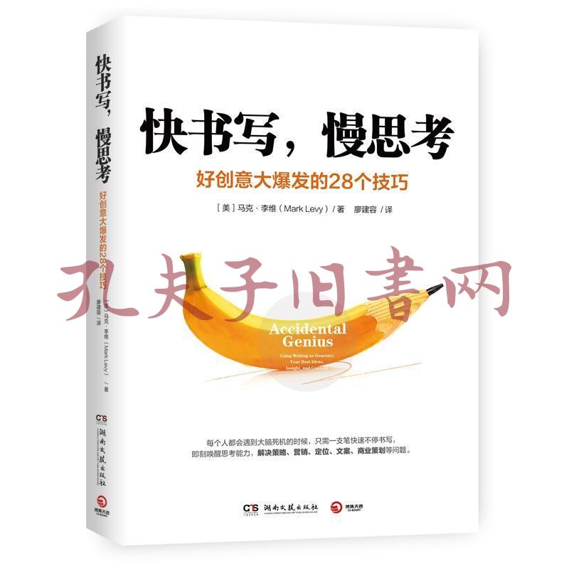 • 《快书写,慢思考》是一本教你用自由书写解放头脑的创意思考书。 每个人都会遇上大脑死机的时候!当逻辑思考无法帮你解决问题时,“自由书写”就是破解僵局的好方法──只需针对眼前的主题,以很快的速度不停书写,接近不要去管逻辑或用词是否正确。这样一来,大脑来不及整理你写出的东西,你便能专注于问题,得到让人眼前一亮的好想法。 多年来,马克·李维利用自由书写解决了很多工作上的问题,同时借此得到了写文章与策划案的灵感。他指出,灵感不是天赋,而是一种练习,只要你能善用原本已在脑中的东西,就能将思绪的原料变成实用、甚至是非凡的点子。他以工作上遇到的难题为实例,包括策略、营销、定位、商业写作等方面的问题,示范各种进行自由书写的方式。 不论你是遇到了写作瓶颈,还是截稿的压力,或是不知该如何处理在脑中四处乱窜的绝妙点子,本书都能帮助你提升战力,唤醒沉睡的思考,将想法化为文字,发挥源源不绝的创意! 马克·李维(Mark Levy) 营销策略公司 Levy Innovation的创办人,曾创下协助企管顾问与创业公司提高二十倍收入的纪录。担任过图书经销商的业务总监,帮助公司销售价值超过十亿美元的产品,并三次获提名角逐《出版人周刊》举办的“年度很好业务员”奖。 马克·李维亦曾为《纽约时报》撰稿,并在罗格斯大学(Rutgers University)教授商业写作,针对激发创意与自由书写的主题四处演讲。 廖建容 台湾地区地区“中山大学”外文研究所毕业,曾在外商公司工作多年。译作有《我是一支爱写作的铅笔》《唤醒心中的》《这辈子我很想做的事》等书,目前专职从事翻译工作。 序言  你的脑袋比你所想的还厉害! 部分 自由书写的六大要点 秘诀一:轻松试 秘诀二:不停地快写 秘诀三:设下时限 秘诀四:以思考的方式进行书写 秘诀五:跟着脑袋里的想法走 秘诀六:转移注意焦点 第二部分 有力的精进与改变 将思绪化为文字 运用引导句 词汇解析 放下自己的聪明才智 抽离的价值 突破既有的假设与概念 一百个点子比一个点子更容易取得 学习爱上说谎 进行纸上对话 将问题付诸纸上作业 书写马拉松 自我质疑 据实书写的魔力 从商管书中撷取精华 你专注什么就成为什么 第三部分 公开发表 与他人分享未臻成熟的想法 帮助他人发挥思考能力 随时留心身边发生的故事 建立点子数据库 为自己量身打造一套原则 从自己着迷的事物着手 自由书写直到作品完成
