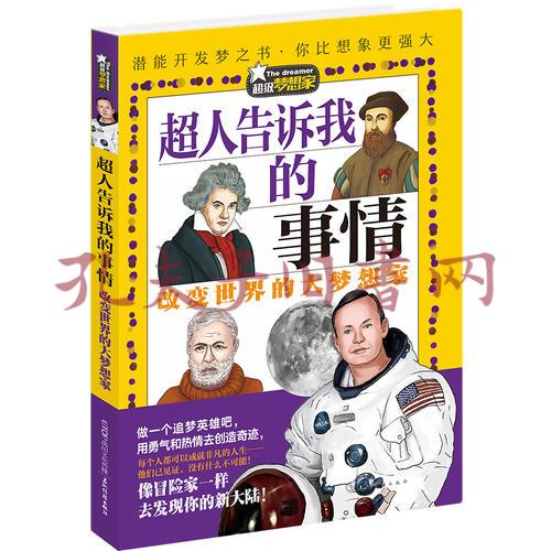 《超人告诉我的事情——改变世界的大梦想家》:每个伟大的梦想都始于一位冒险家,不止步的追寻让他们在寻梦的路上,遇见了未知和惊人的自己。抓住每一个机会挑战不可能,什么样的梦想都可能实现。去发现和挖掘你的潜能吧,像超人一样势不可挡。