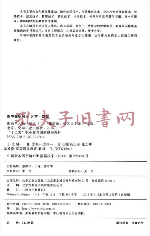 制药单元操作技术/“十二五”职业教育国家规划教材