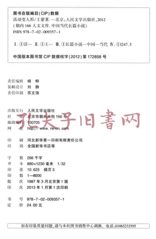 朝内166人文文库·中国当代长篇小说:活动变人形