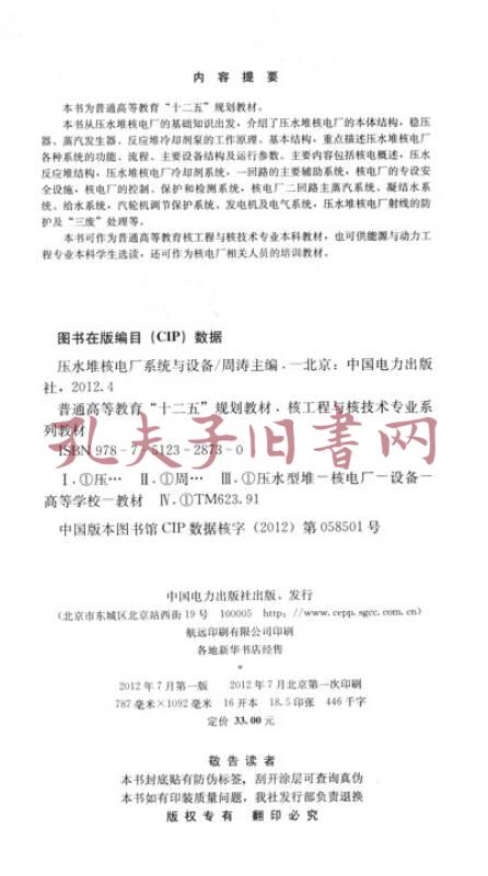 普通高等教育“十二五”规划教材·核工程与核技术专业系列教材:压水堆核电厂系统与设备