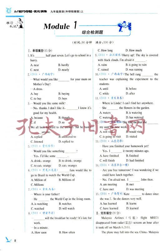 1+1轻巧夺冠 优化训练:九年级英语上