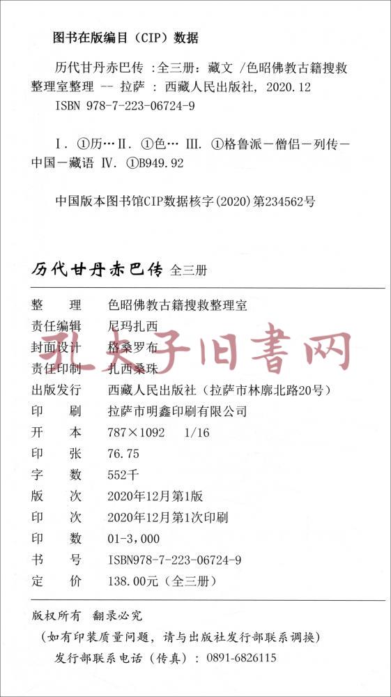 历代甘丹赤巴传全三册