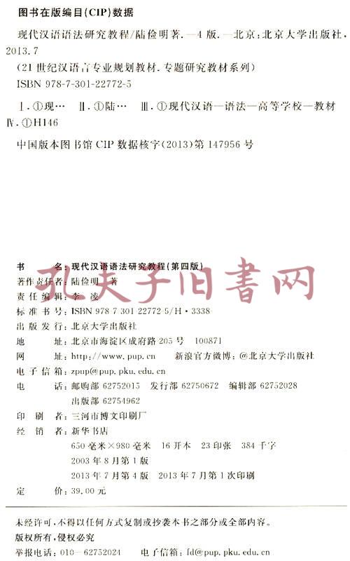 现代汉语语法研究教程[第四版]