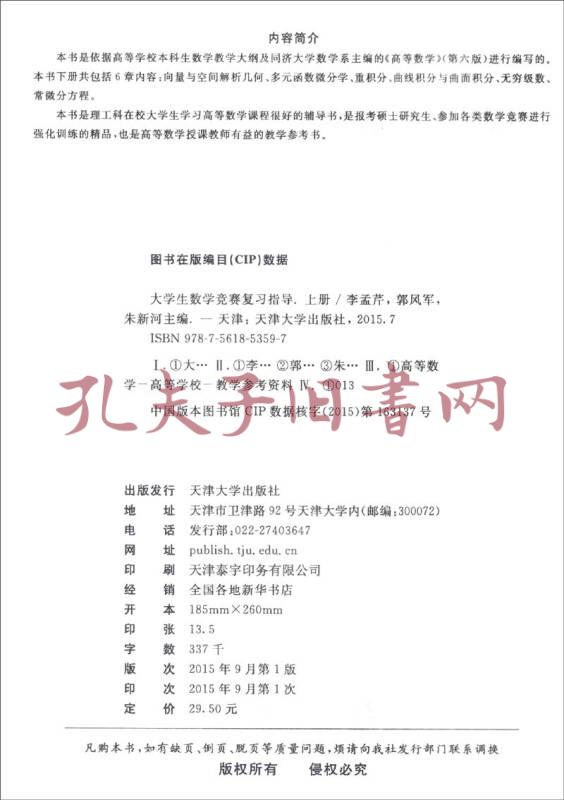 大学生数学竞赛复习指导(上册)