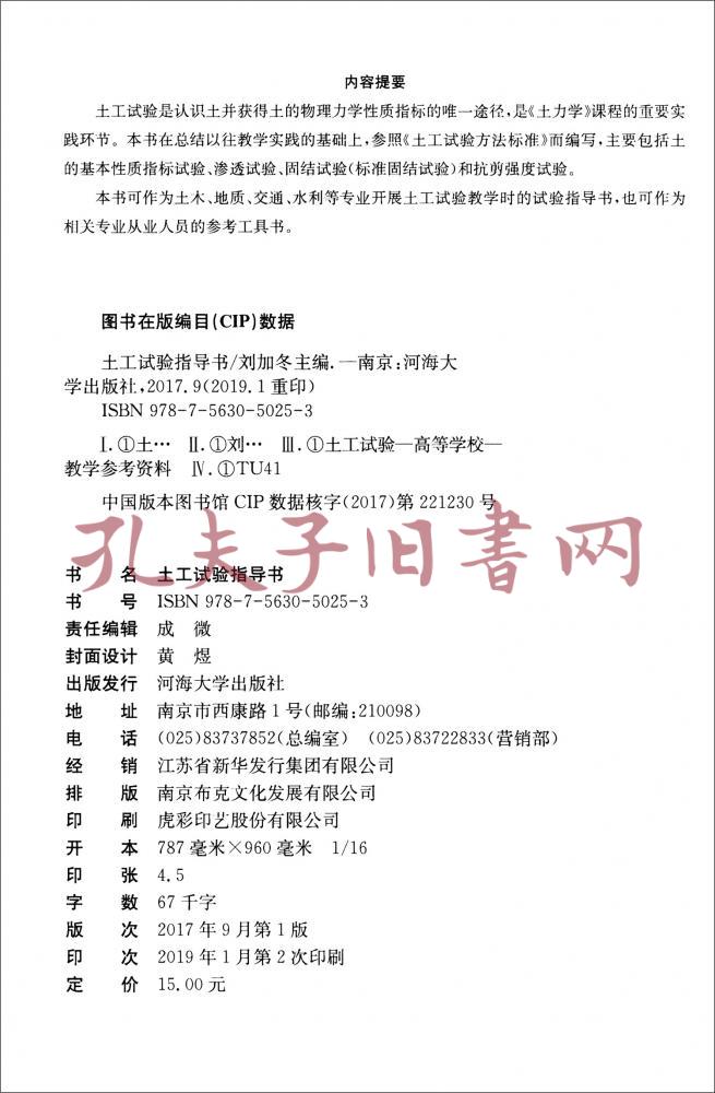 土工试验指导书/河海大学文天学院规划教材