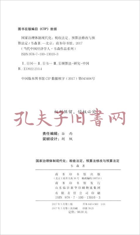 当代中国经济学人·韦森作品系列之六 国家治理体制现代化:税收法定、预算法修改与预算法定