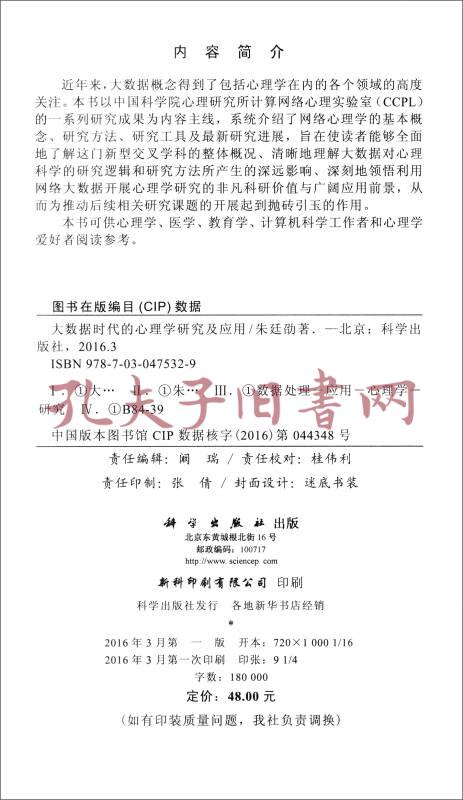 大数据时代的心理学研究及应用