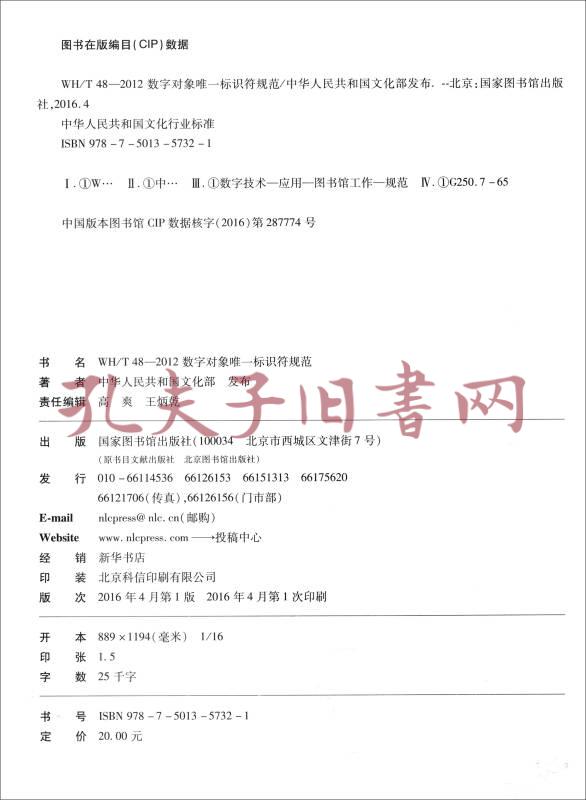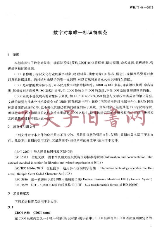 中华人民共和国文化行业标准:数字对象唯一标识符规范