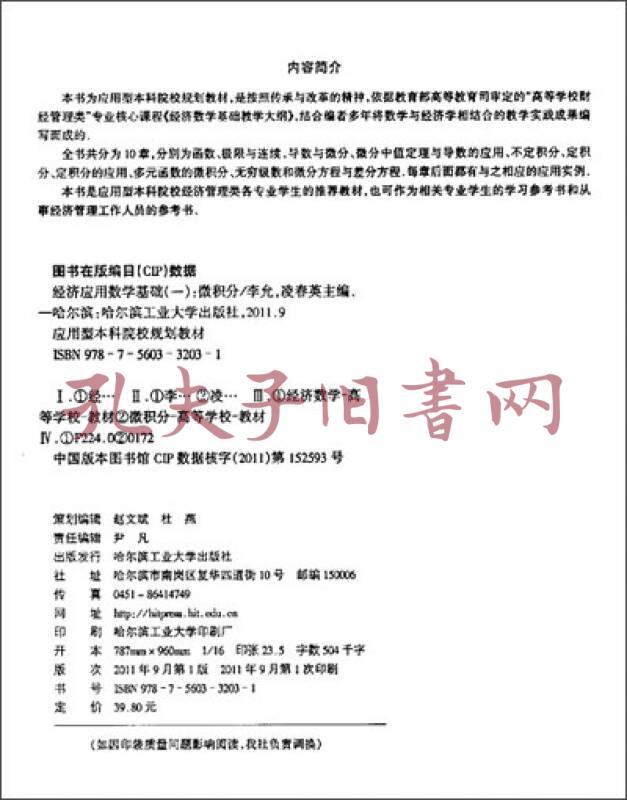 应用型本科院校规划教材(数学)·经济应用数学基础1:微积分