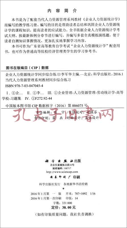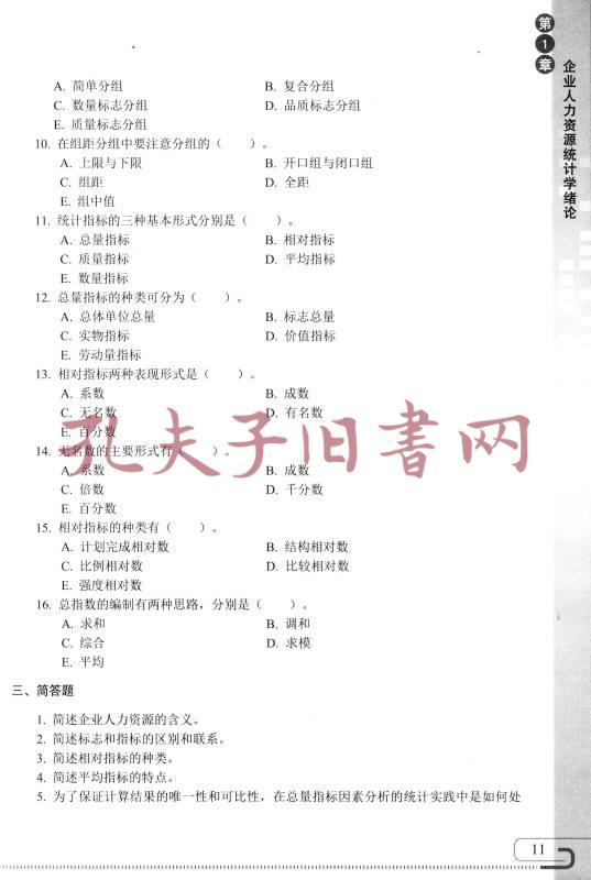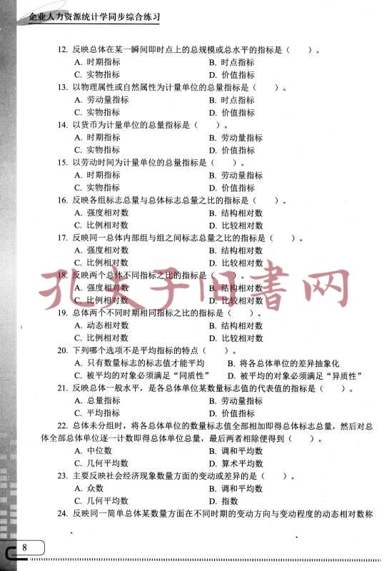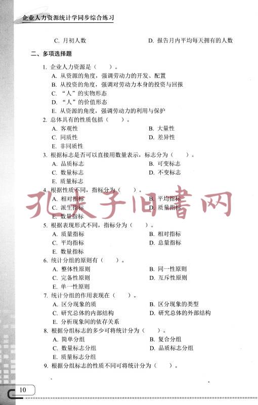 企业人力资源统计学同步综合练习