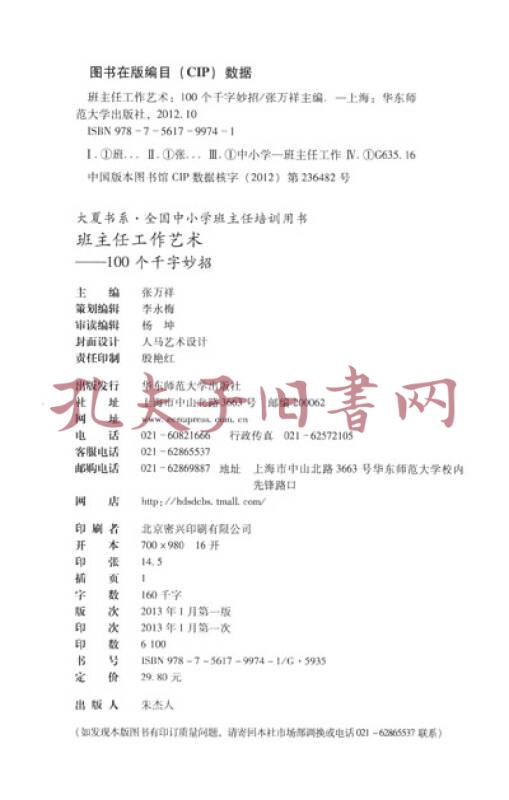 大夏书系·全国中小学班主任培训用书·班主任工作艺术:100个千字妙招