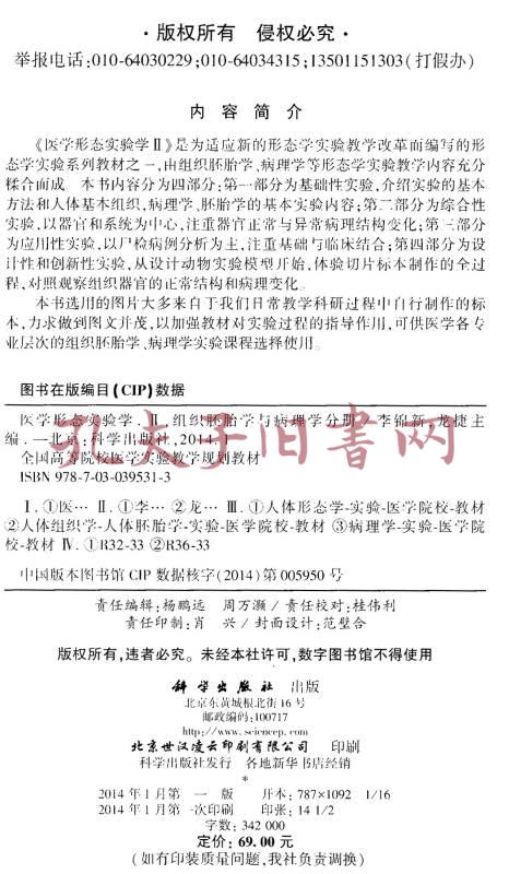 医学形态实验学2:组织胚胎学与病理学分册/全国高等院校医学实验教学规划教材