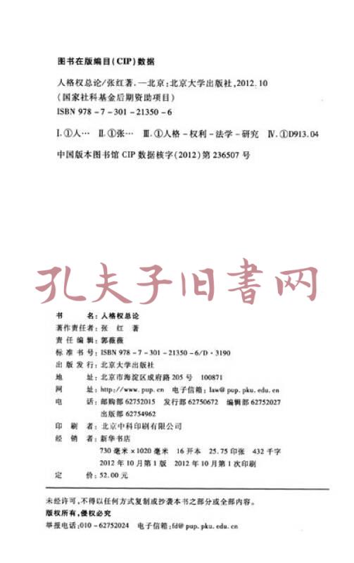 国家社科基金后期资助项目:人格权总论